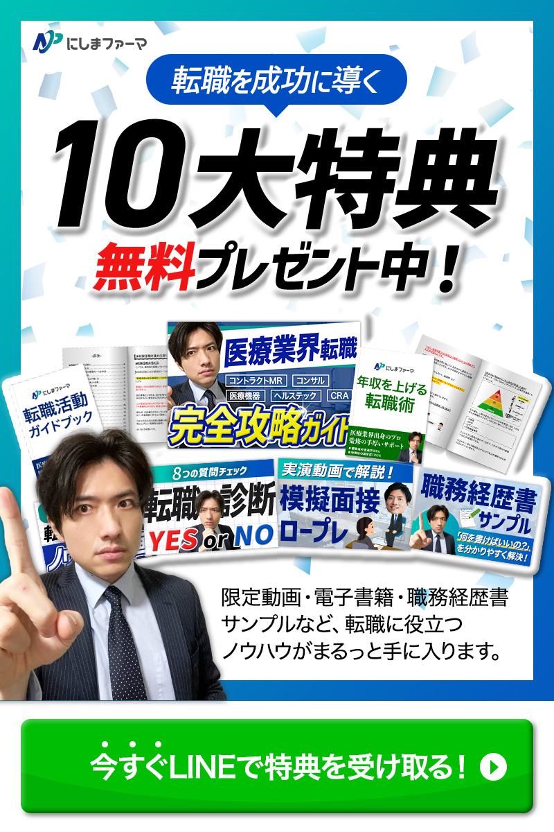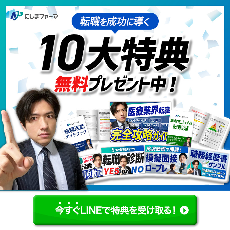 - 「10大特典」「無料プレゼント中!」を大きく打ち出し、特典の魅力がひと目で伝わる構成