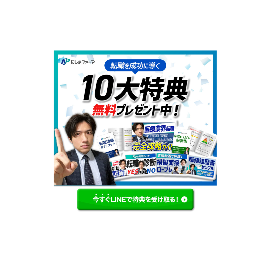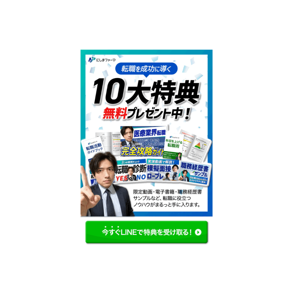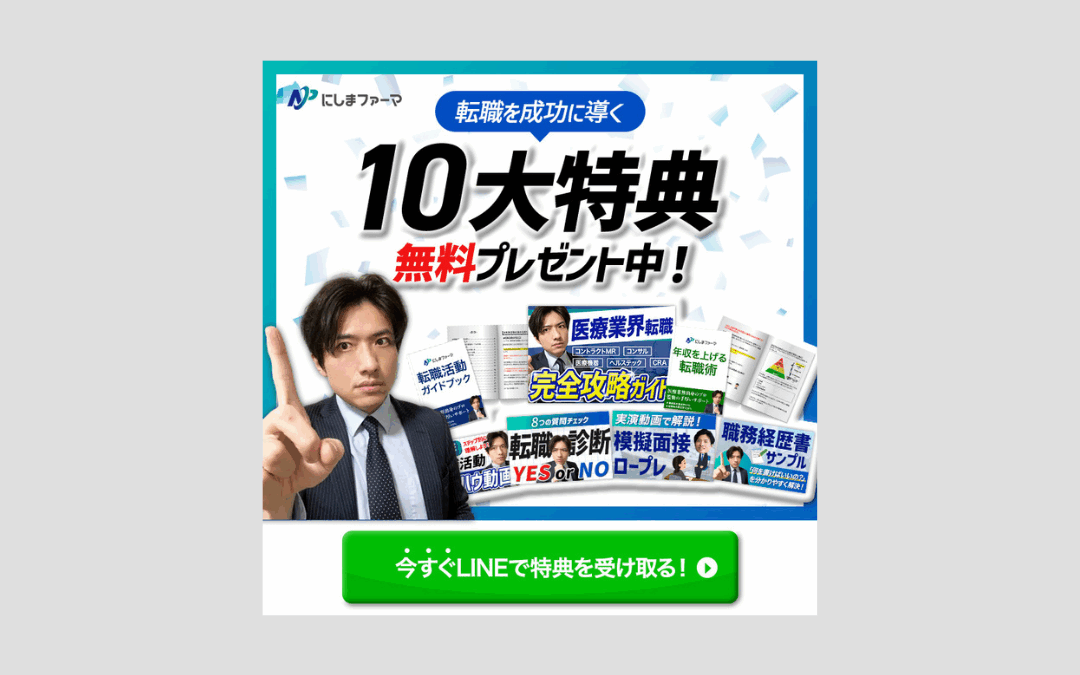 - 「10大特典」「無料プレゼント中!」を大きく打ち出し、特典の魅力がひと目で伝わる構成